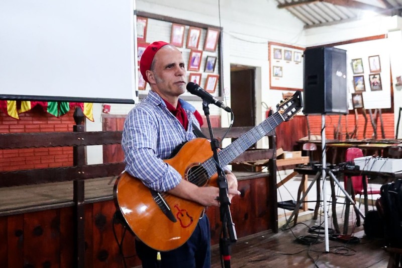 Na manhã de hoje, a atração foi o renomado violonista Marcelo Caminha, que compartilhou técnicas e experiências com os estudantes, aproximando-os ainda mais da música tradicional gaúcha.